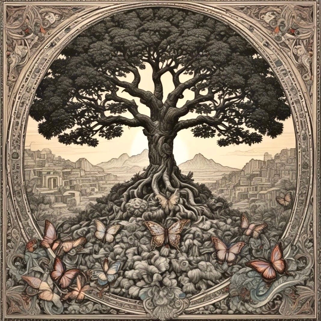 The sound, however, had startled the kaleidoscope of butterflies so that they rose together, swirling gently in a counter sun-wise spiral as they lifted themselves up and into the treetops.